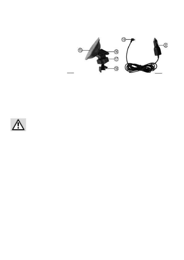 behindert. Stecken Sie den Kfz-Stecker (Position 20 in der Übersicht) des Ladekabels in die 12 V-Kfz-Steckdose Ihres