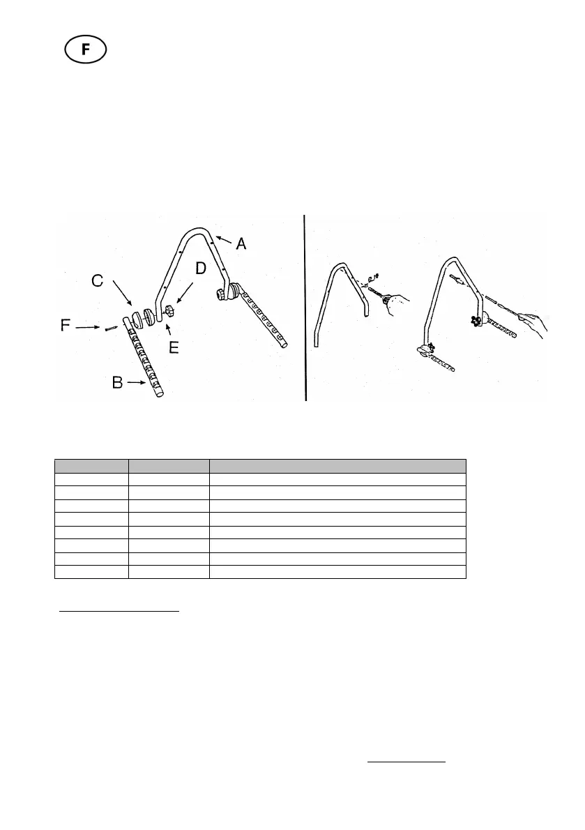 mettez les vis à tête plate F à travers les troux vrillés des bras-supports et ajustez ensuite les raccords