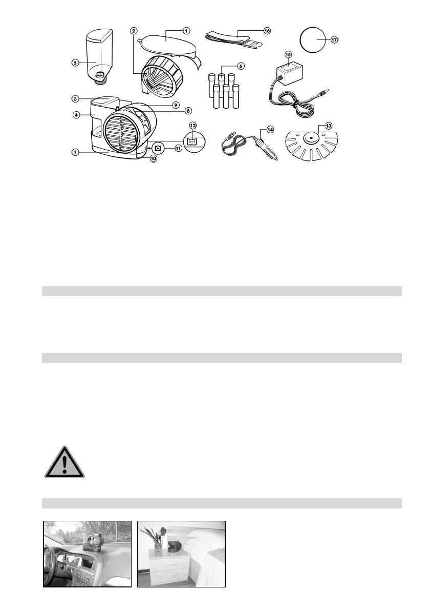 • Die Mini-Klimaanlage darf beim Betrieb im Fahrzeug nicht im Bereich