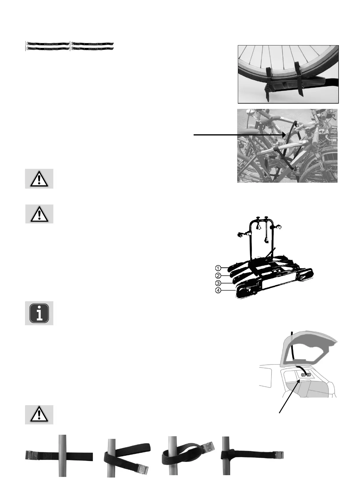 Il portabiciclette non si deve utilizzare senza questa cinghia di sicurezza.