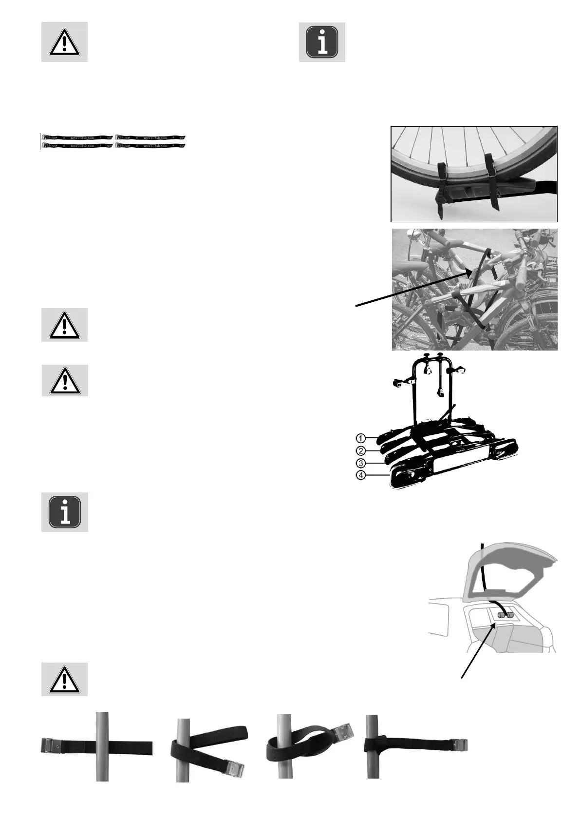 Bez tohoto bezpečnostního popruhu nesmí být nosič jízdních kol používán.