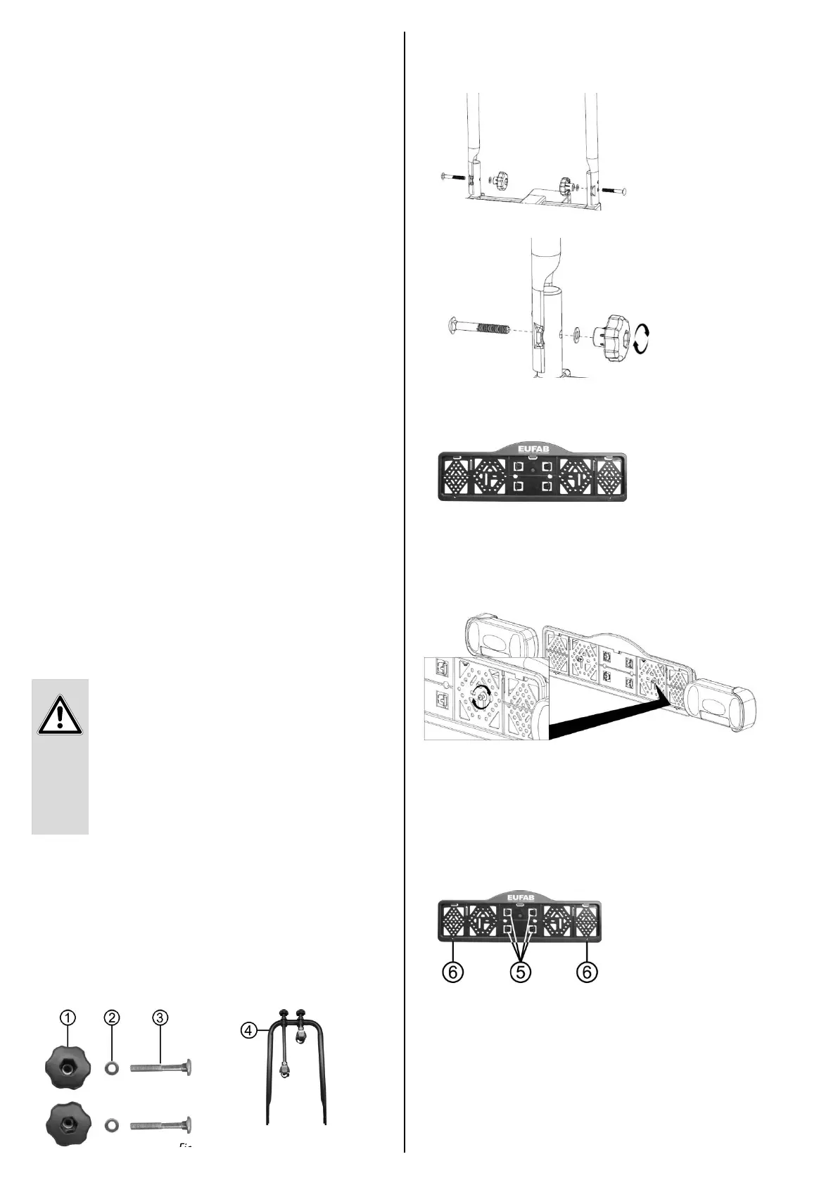 à l’aide des vis de blocage (3), les rondelles (2) et les poignées écrous (1) tel