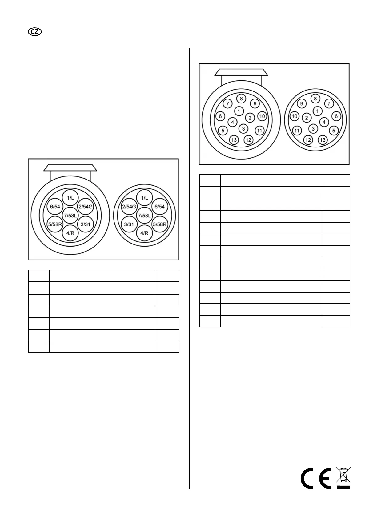 Zařízení se připojuje do zásuvky spojky přívěsu pomocí 13-pólového