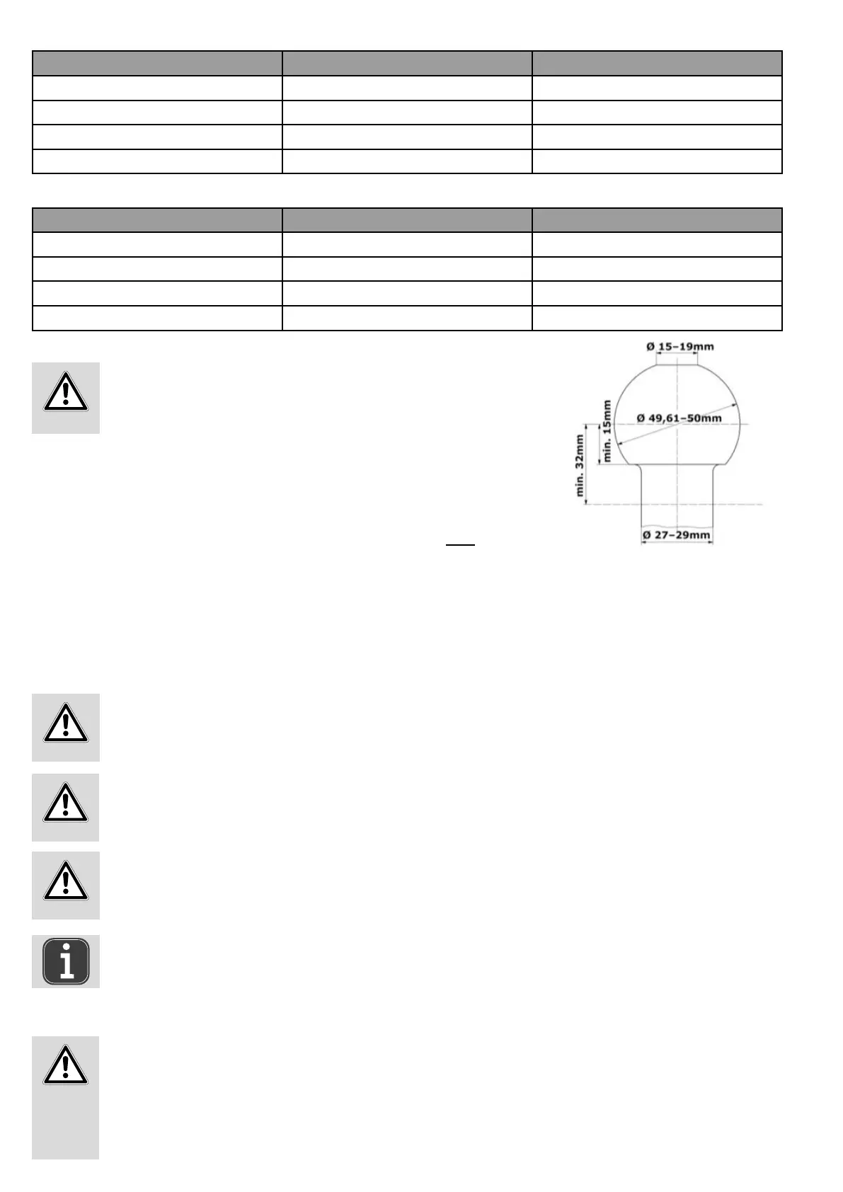 • Montieren Sie den Fahrradträger nur an eine Kupplung aus Stahl St52, Grauguss GG52 oder besserer Güte.