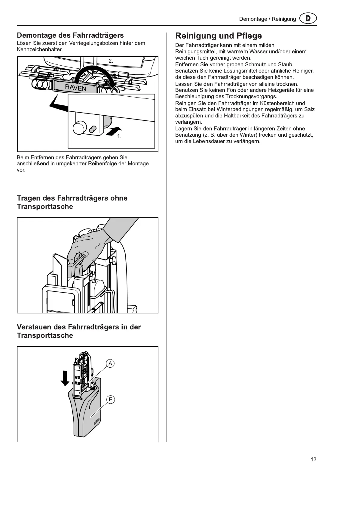 abzuspülen und die Haltbarkeit des Fahrradträgers zu