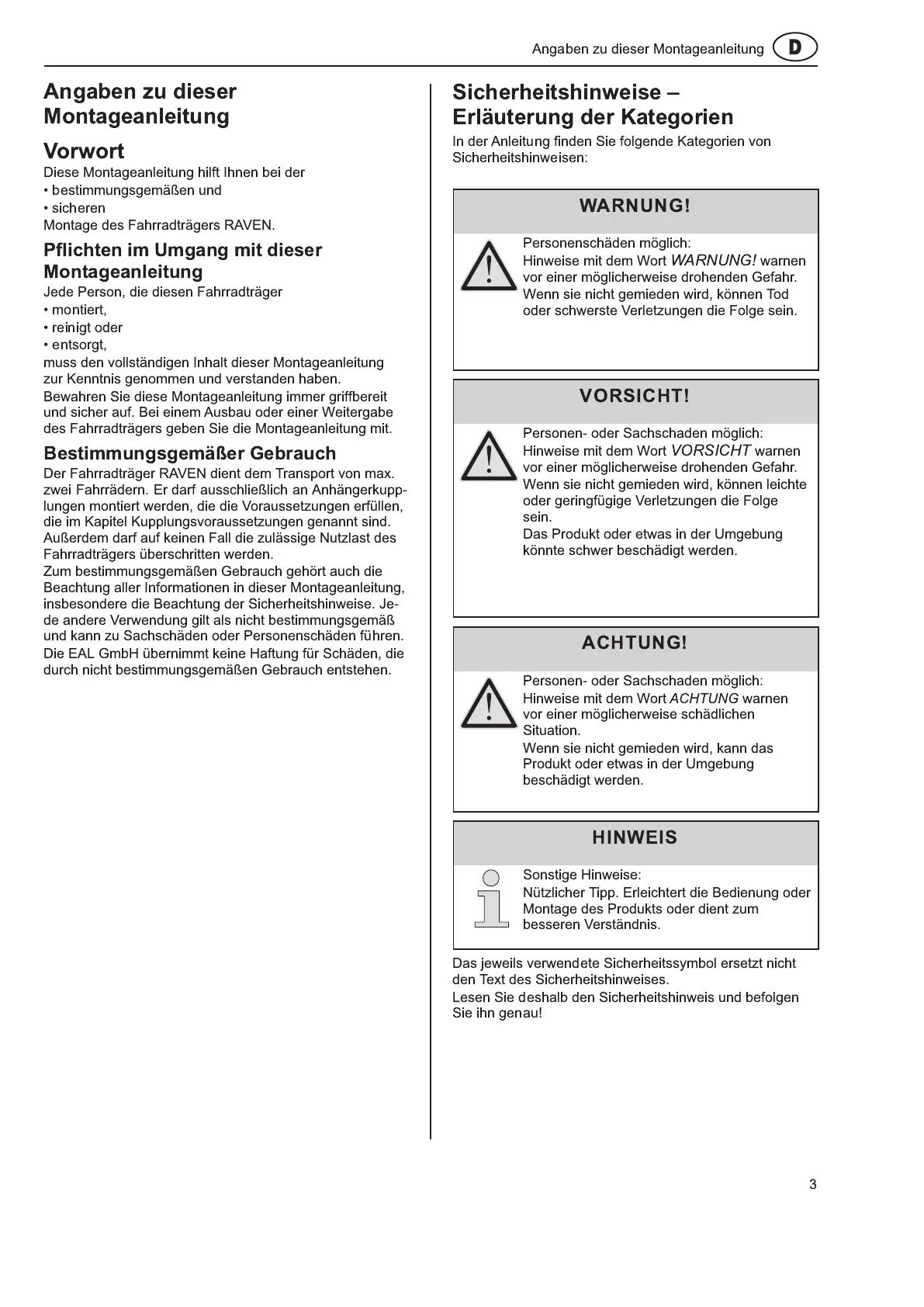 des Fahrradträgers geben Sie die Montageanleitung mit.