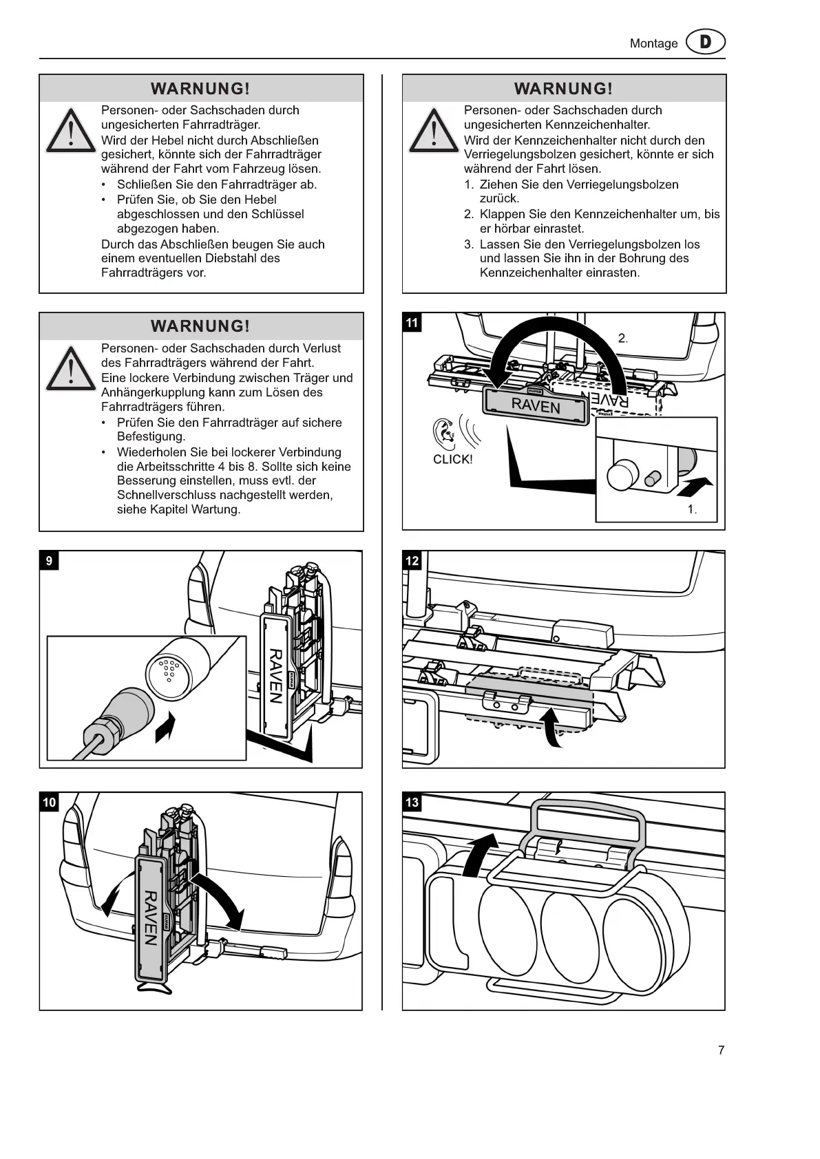 • Prüfen Sie den Fahrradträger auf sichere
