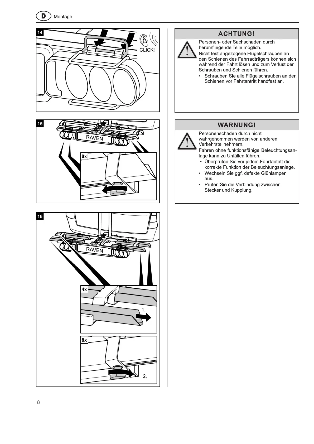 • Überprüfen Sie vor jedem Fahrtantritt die