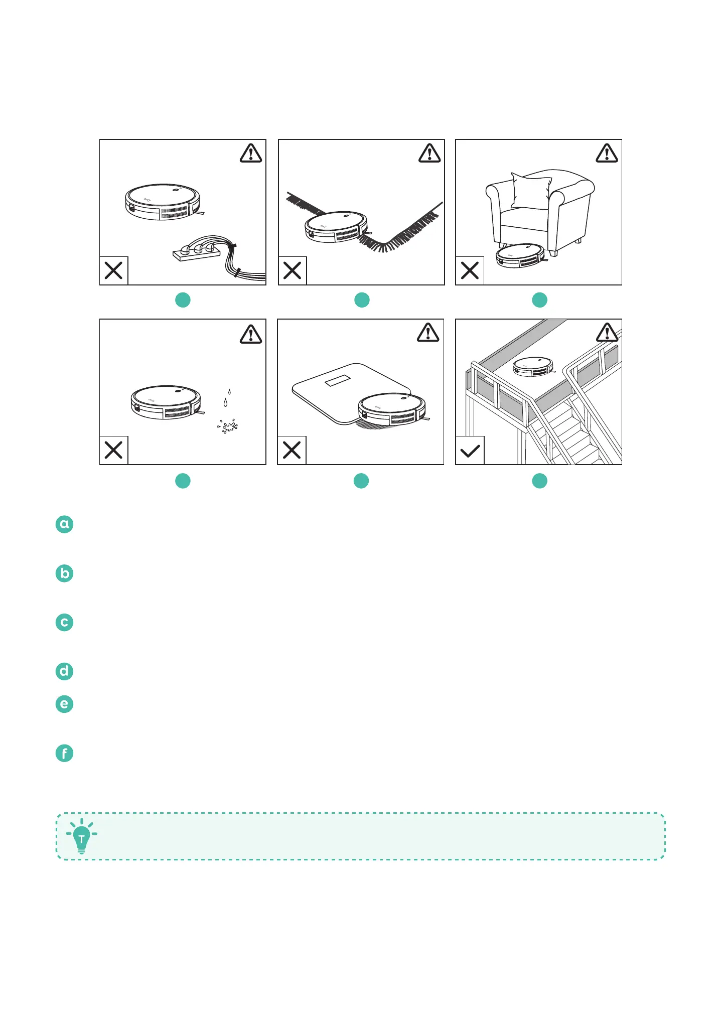 Place physical barriers in front of fireplaces and areas that may cause damage to RoboVac if entered.