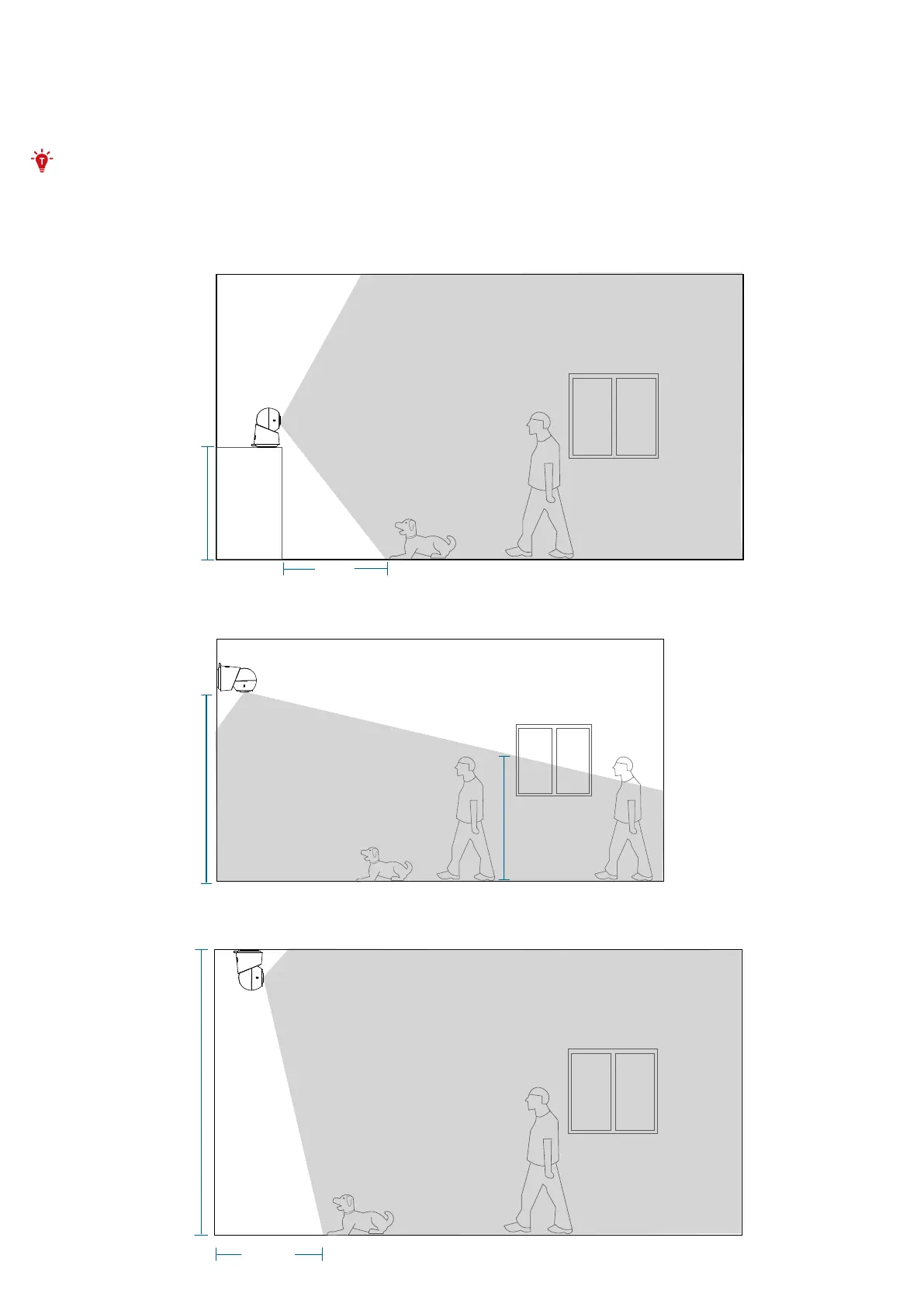 The camera can be placed on a table or shelf, or mounted on a wall or ceiling. Choose a location and height that achieves