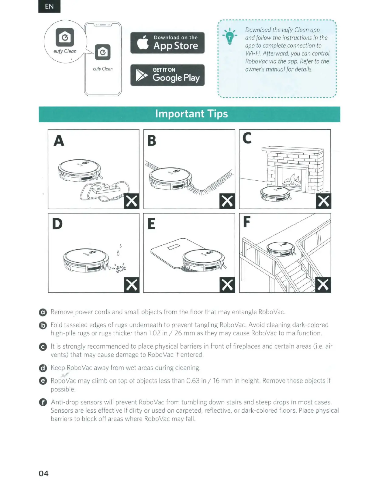 areas where RoboVac may fall.