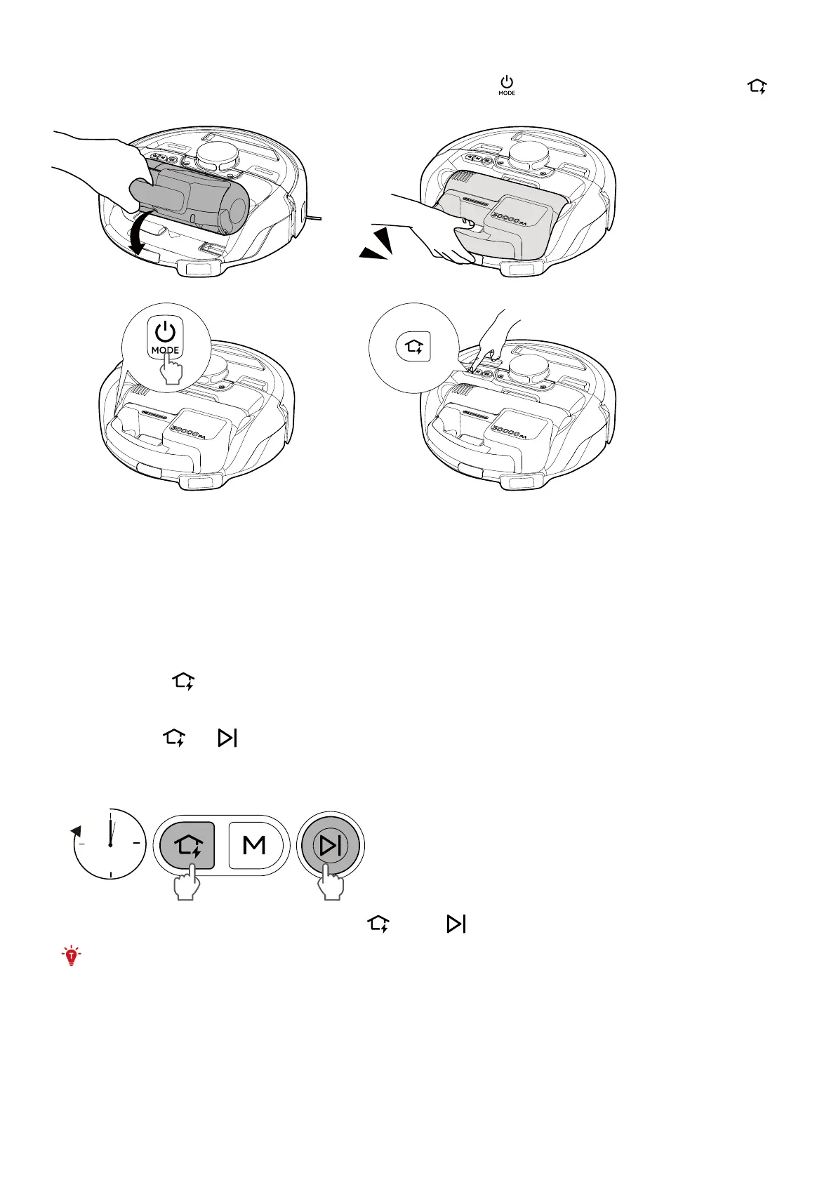 • After more than 10 minutes of cleaning with the cordless stick vacuum, reinsert the vacuum back to the Robot.