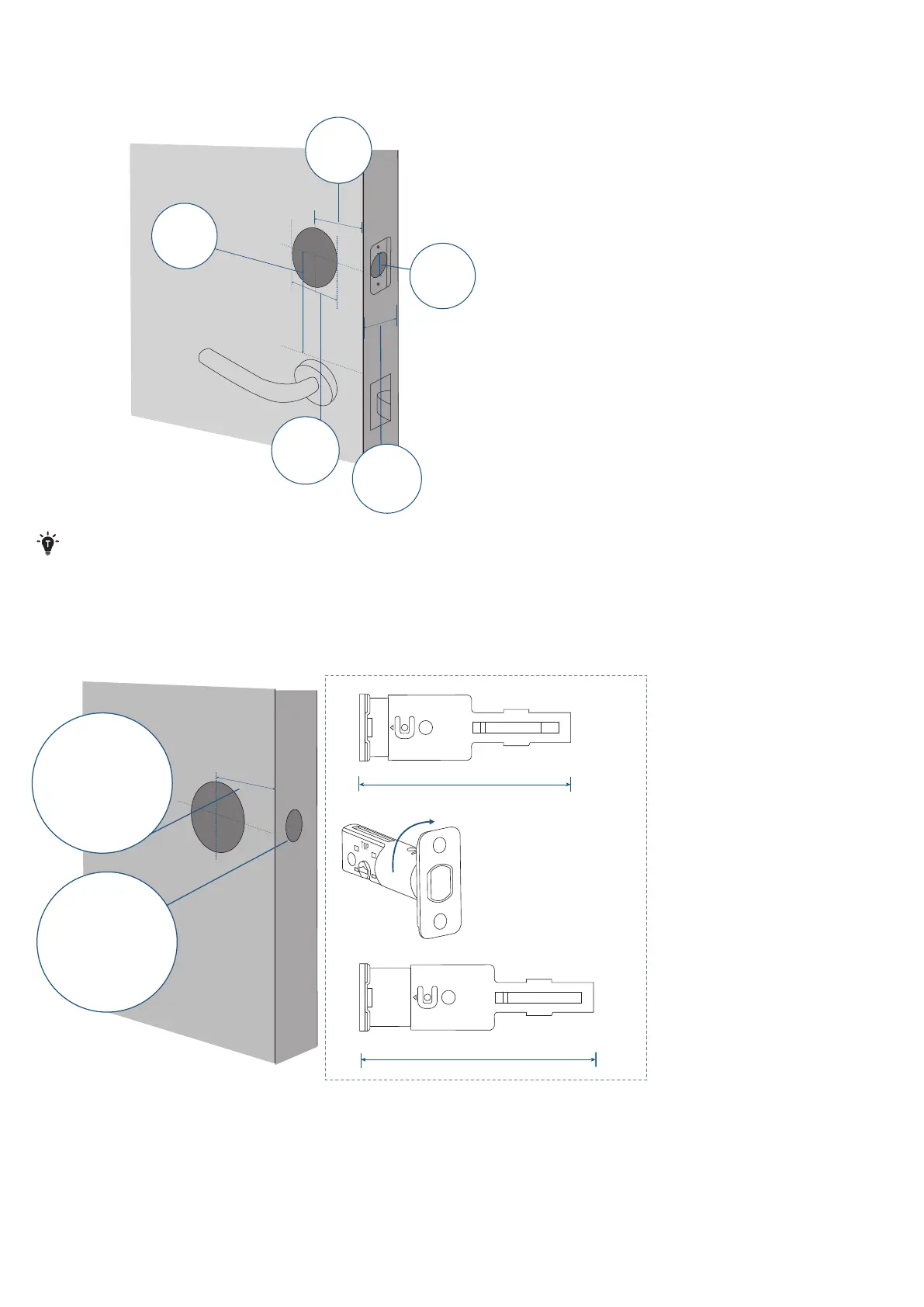 2. Check if your door has holes as illustrated below. If not, use the template and drill holes in your door.