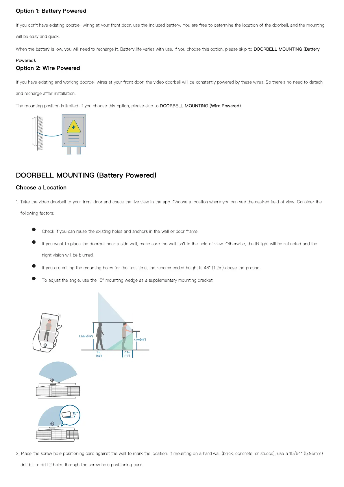 1. Take the video doorbell to your front door and check the live view in the app. Choose a location where you can see the desired