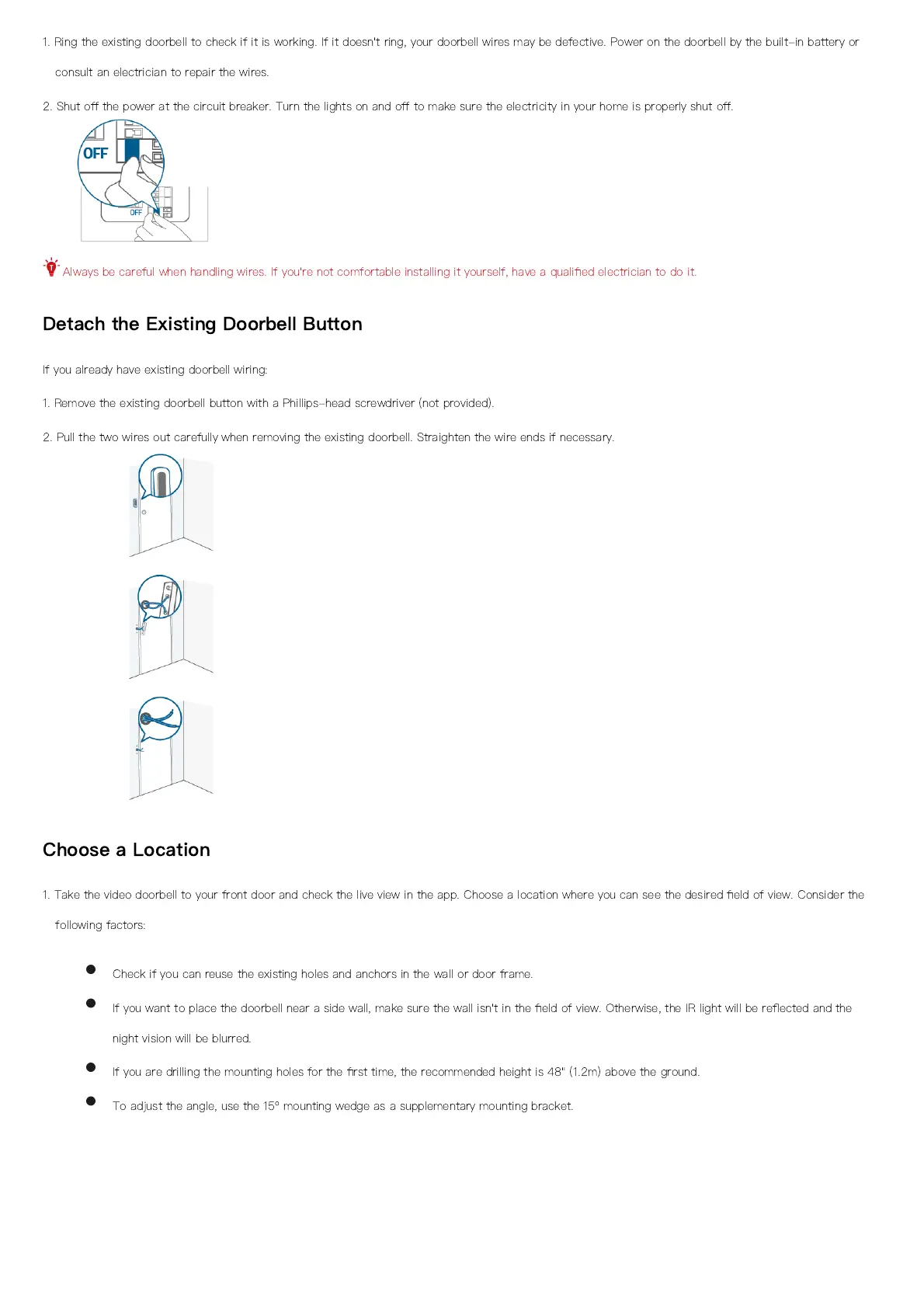 1. Take the video doorbell to your front door and check the live view in the app. Choose a location where you can see the desired