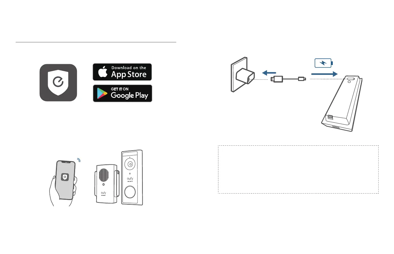 worden getransporteerd. Laad de deurbel volledig op voordat u deze bij uw voordeur