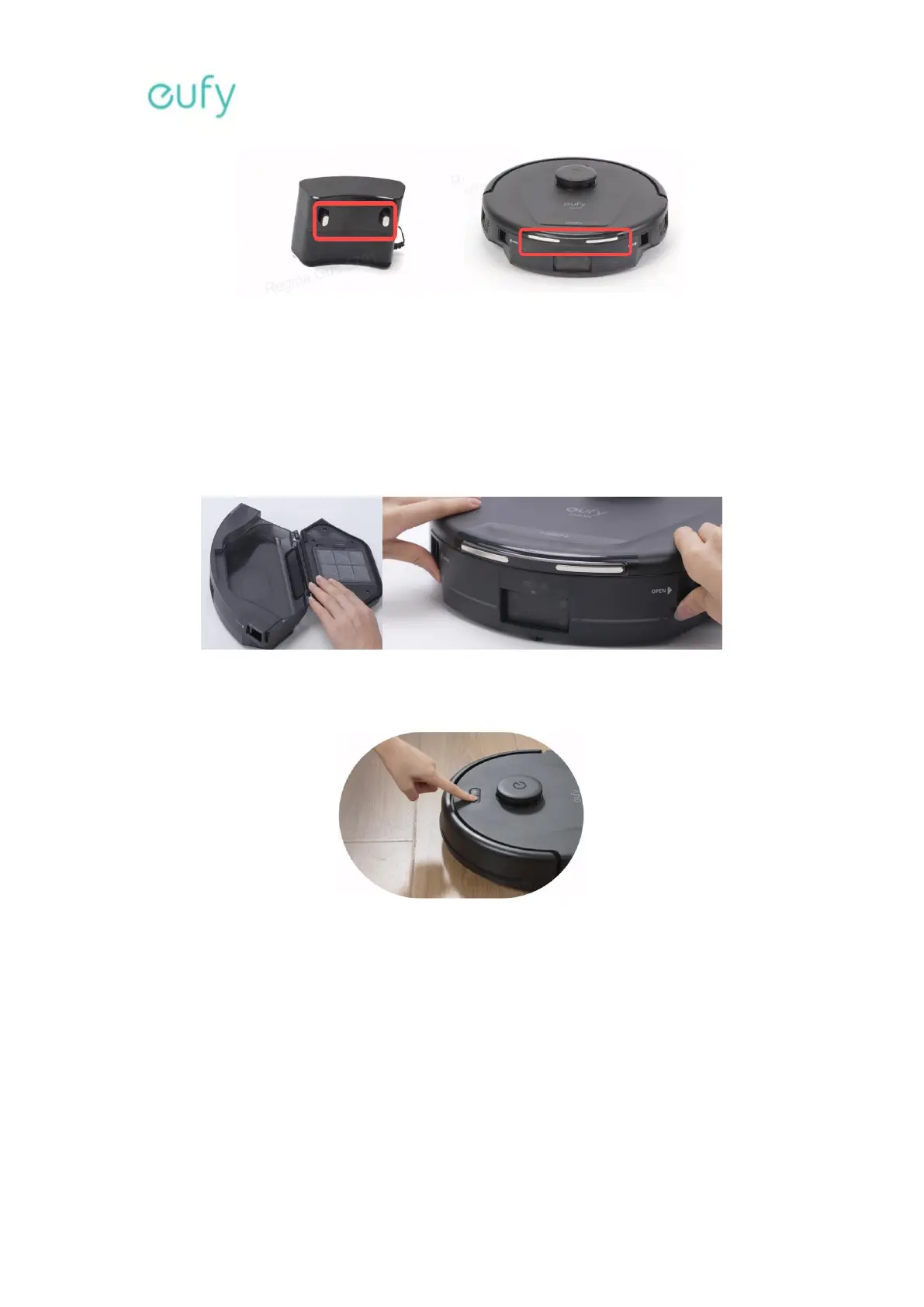Start/Pause button for three seconds to power on/off the robot vacuum cleaner.
