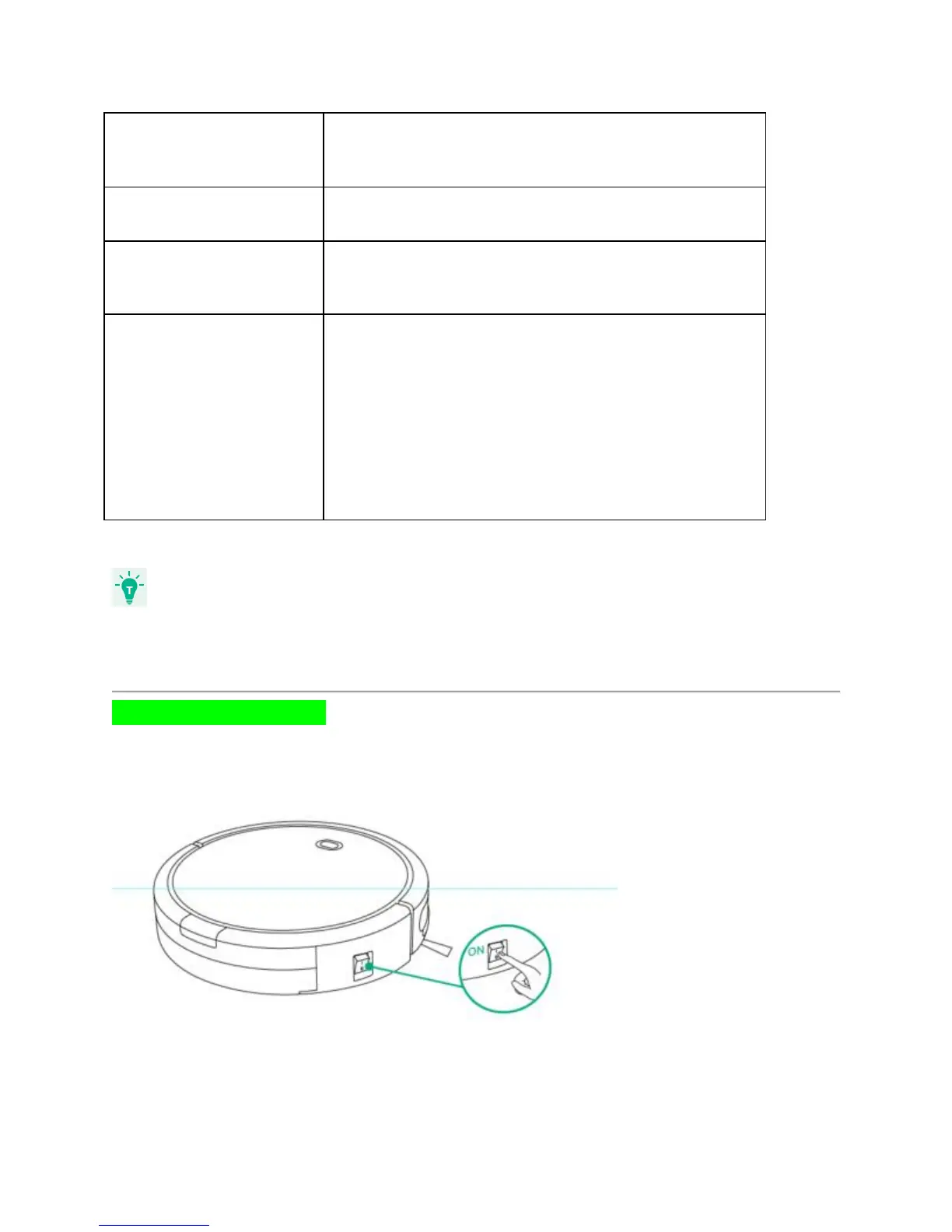 Press the main power switch on the side of RoboVac to turn on the main power supply.