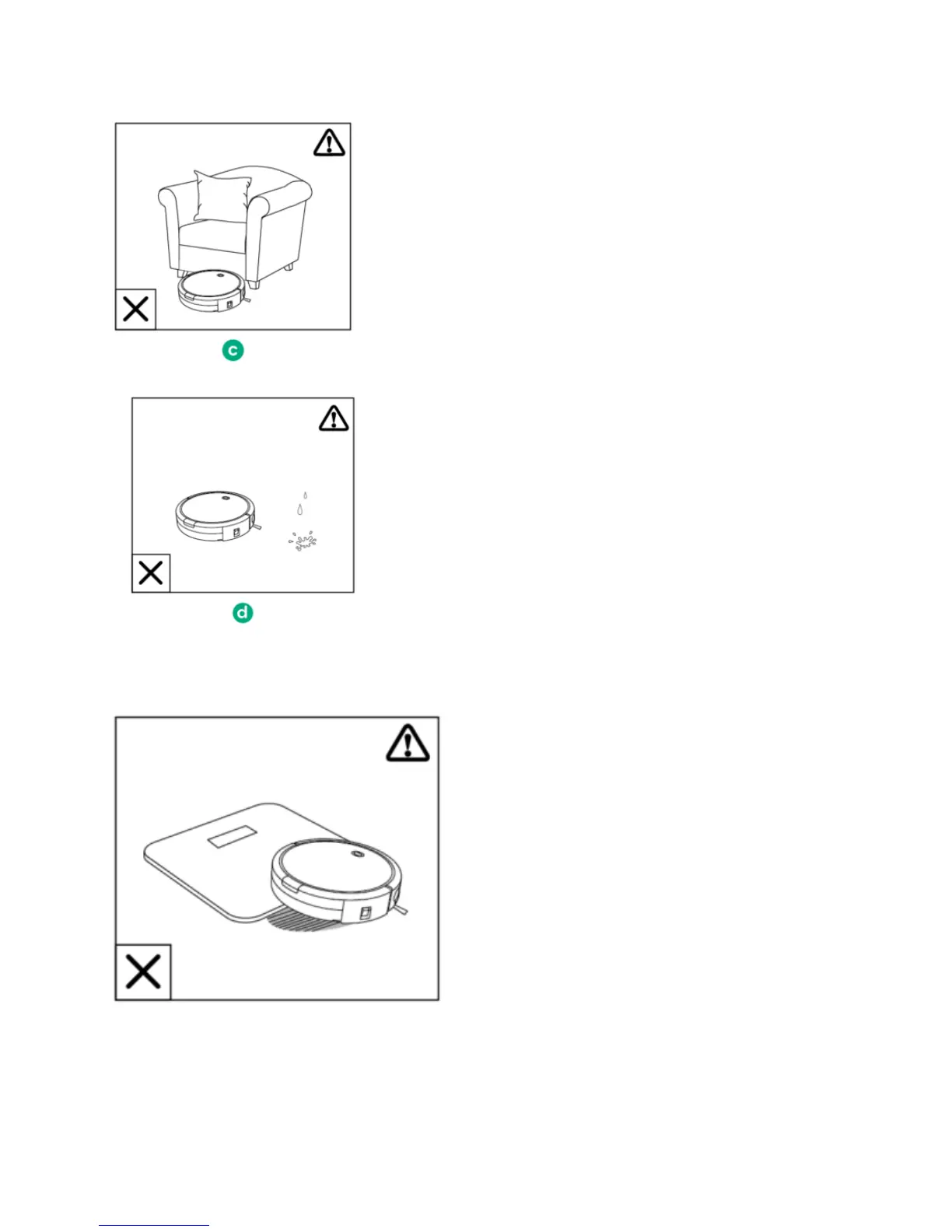 Keep RoboVac away from wet areas.