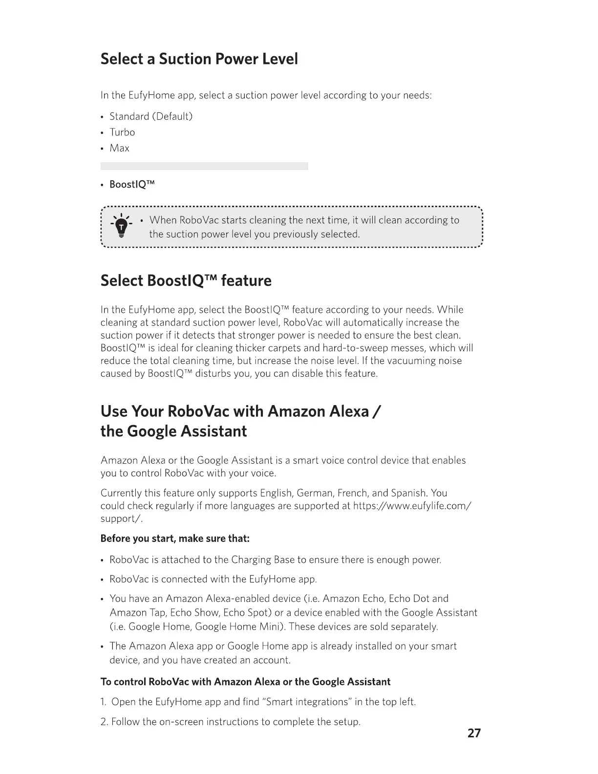 cleaning at standard suction power level, RoboVac will automatically increase the