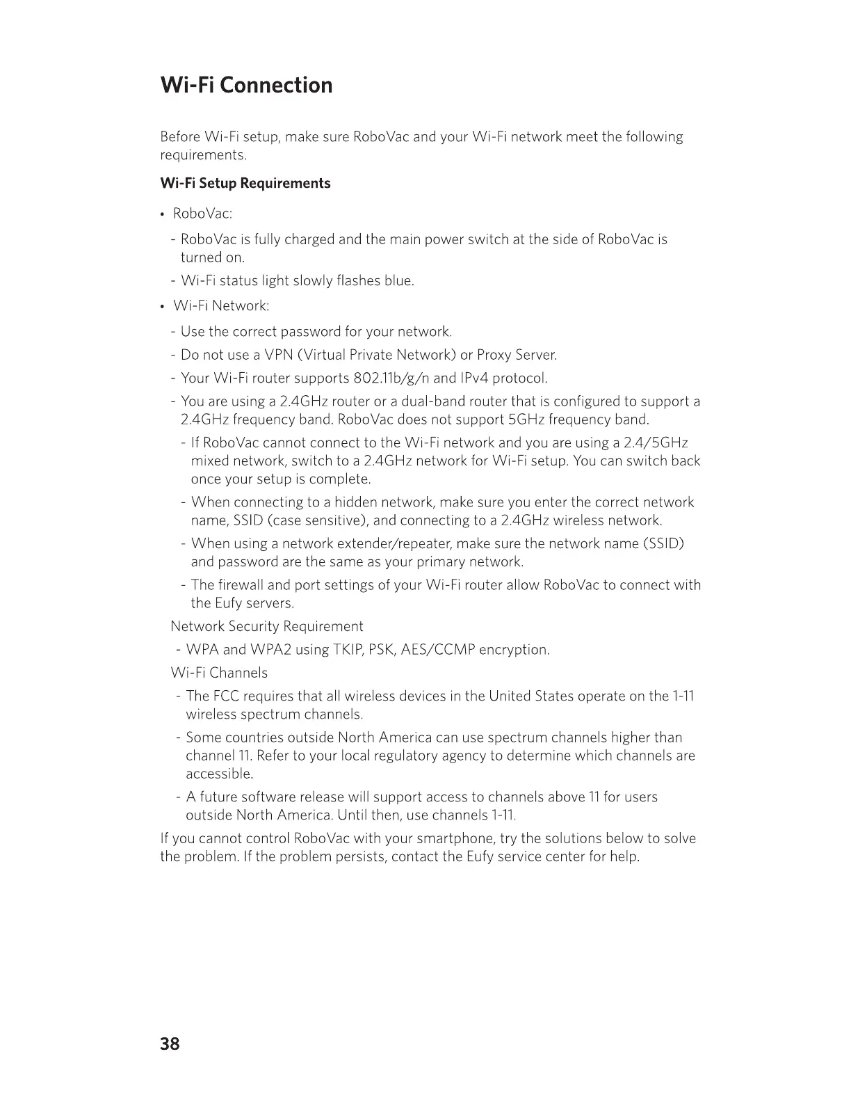 Before Wi-Fi setup, make sure RoboVac and your Wi-Fi network meet the following