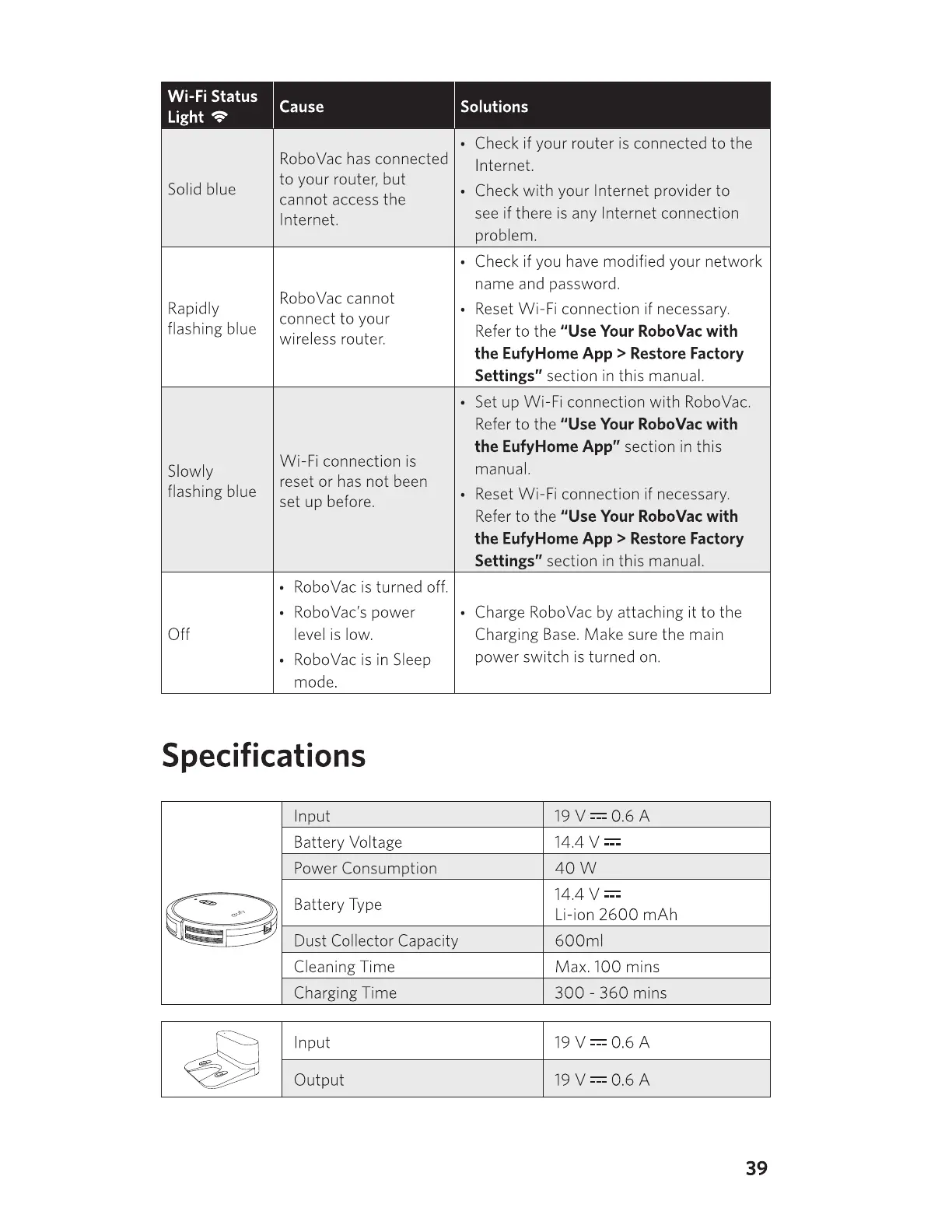 EUFY RoboVac - Specifications