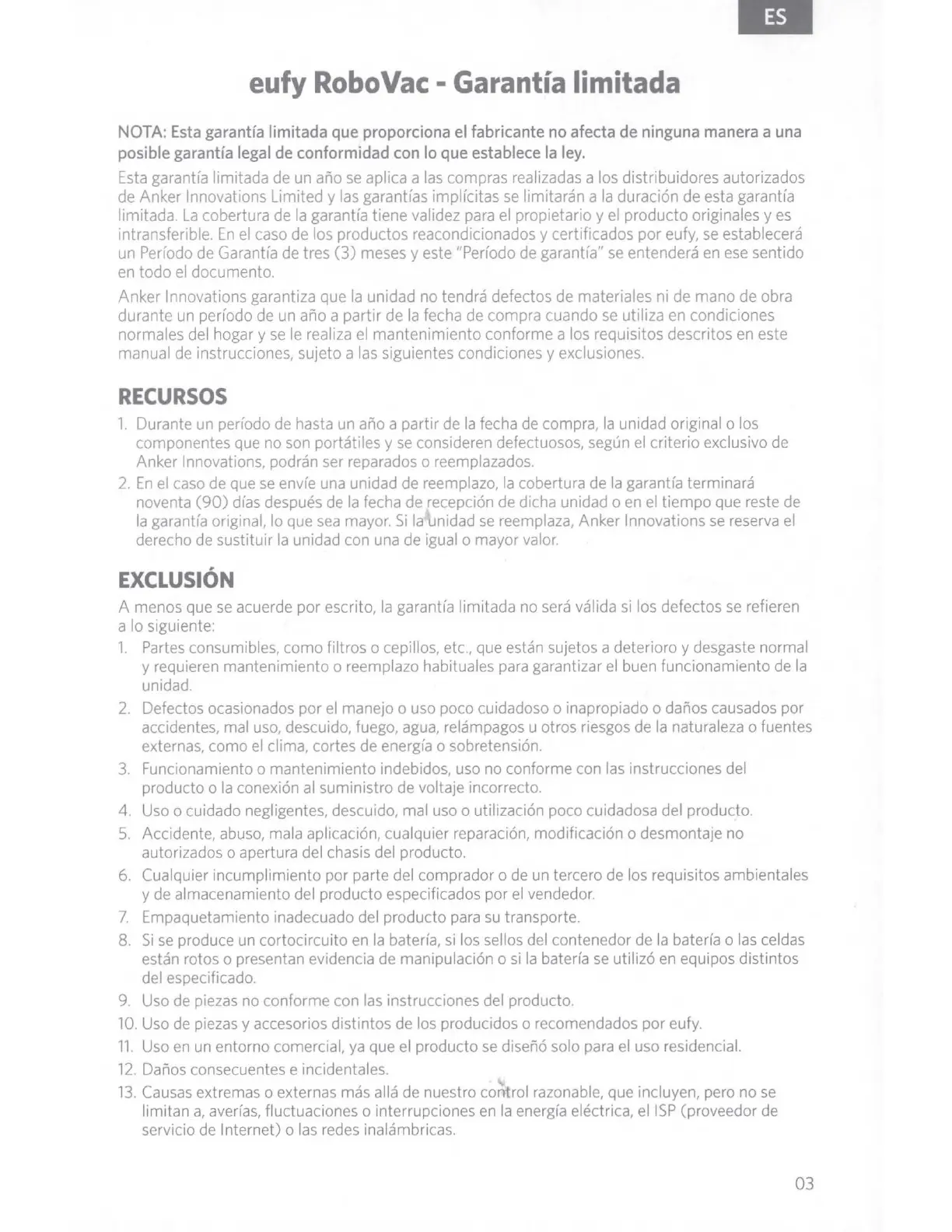 manual de instrucciones, sujeto a las siguientes condiciones y exclusiones.