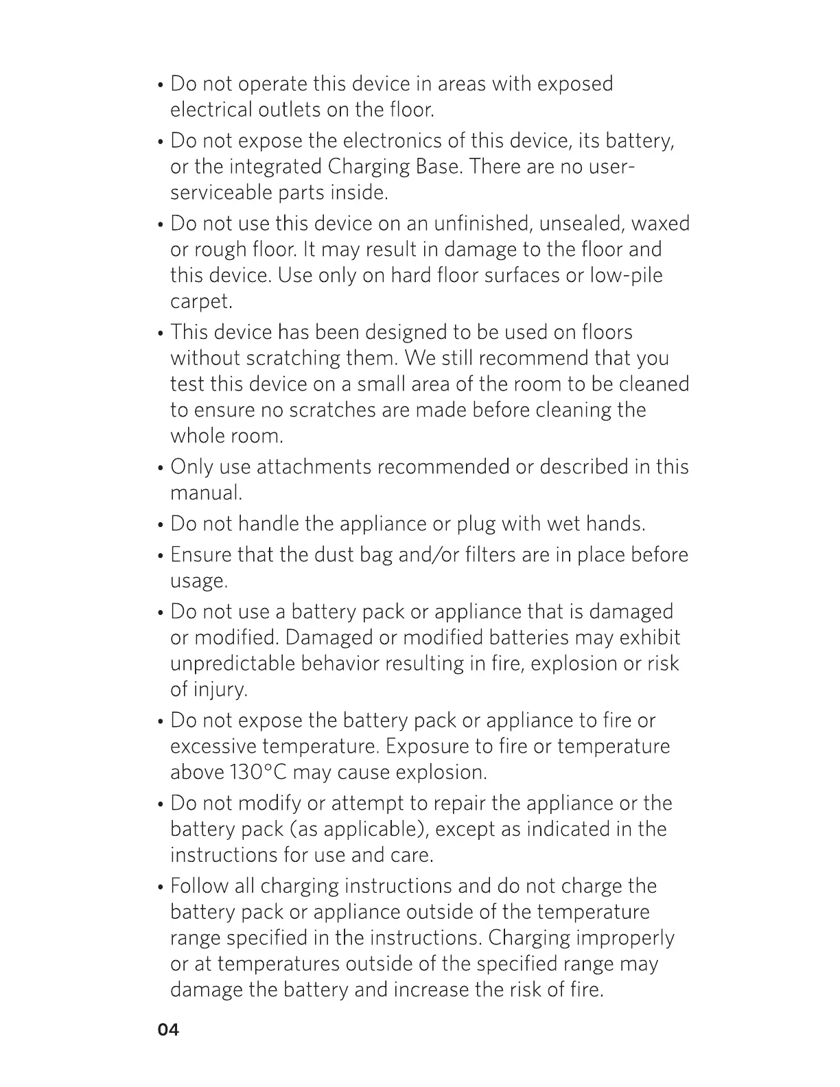 • Do not expose the battery pack or appliance