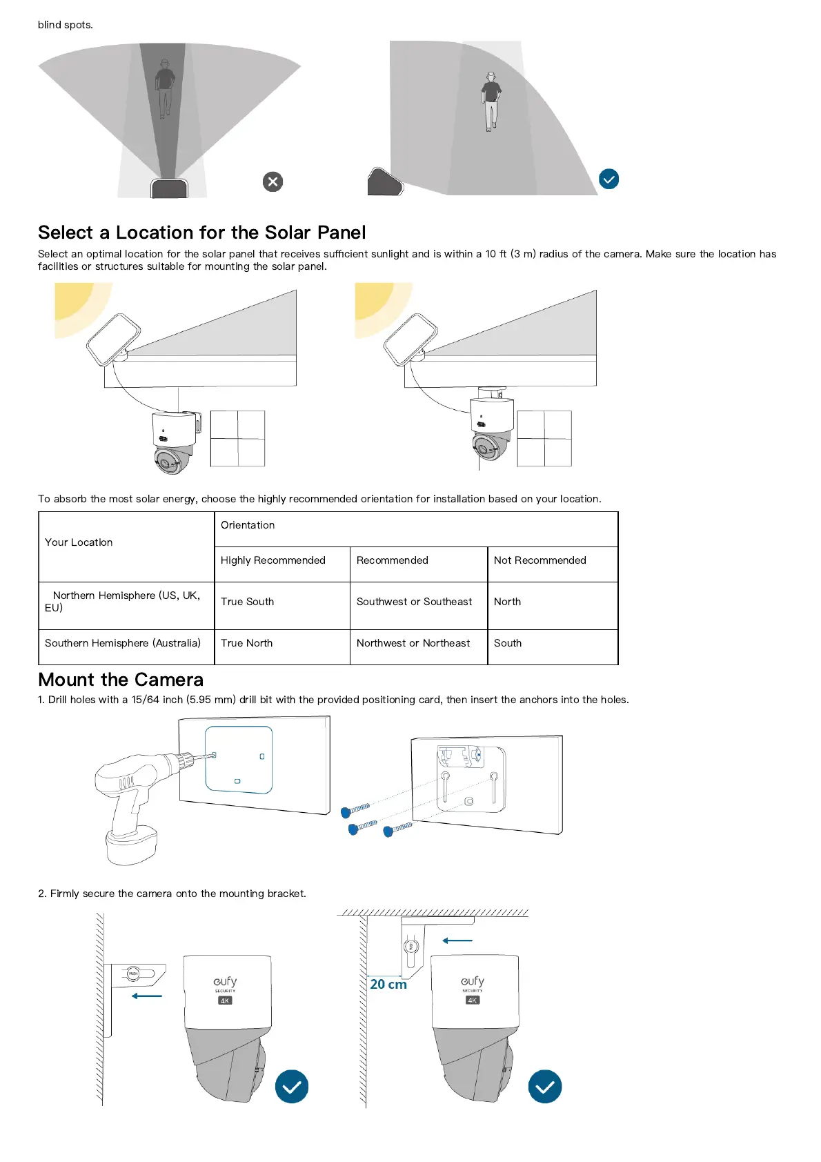 To absorb the most solar energy, choose the highly recommended orientation for installation based on your location.