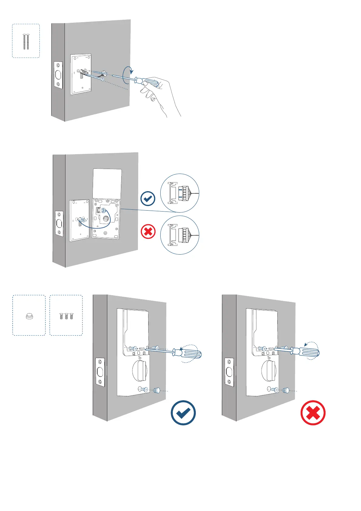 3. Attach the side with the silicone pad to the door, and secure the mounting plate with screws.