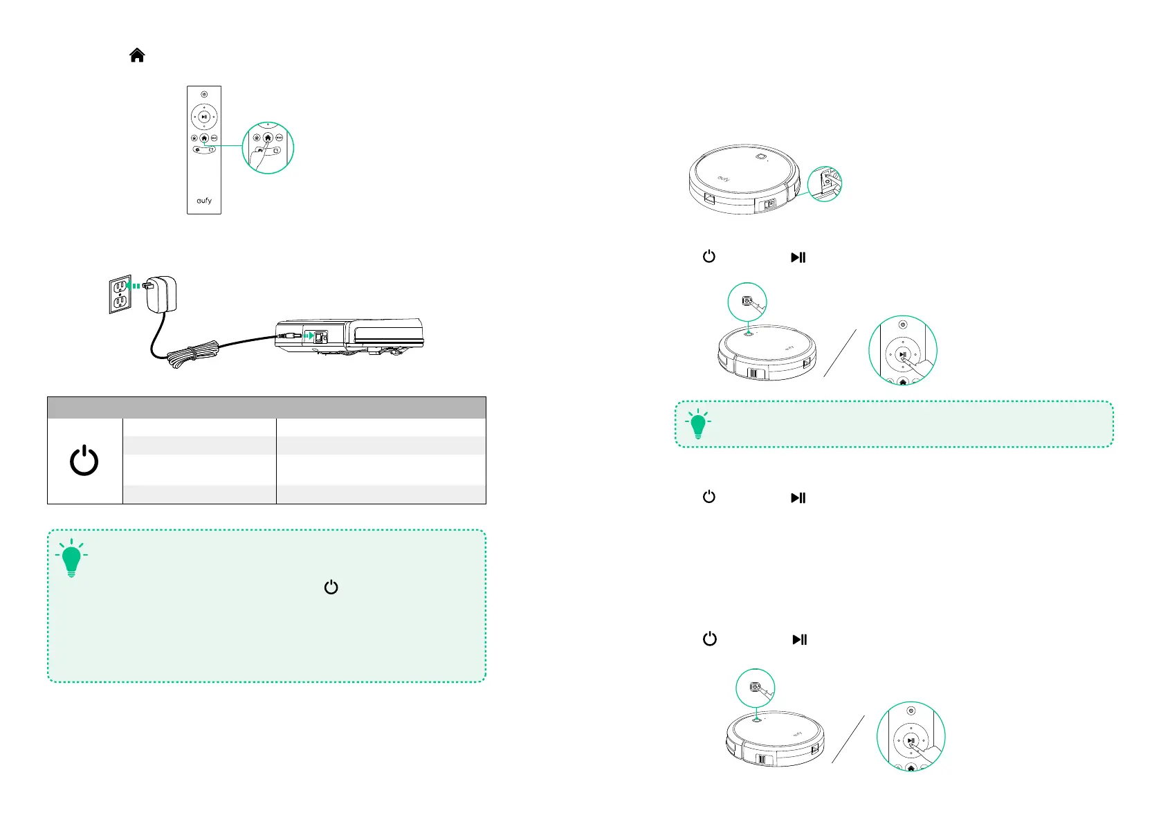 Press the power switch on the side of RoboVac to turn on the main power supply.