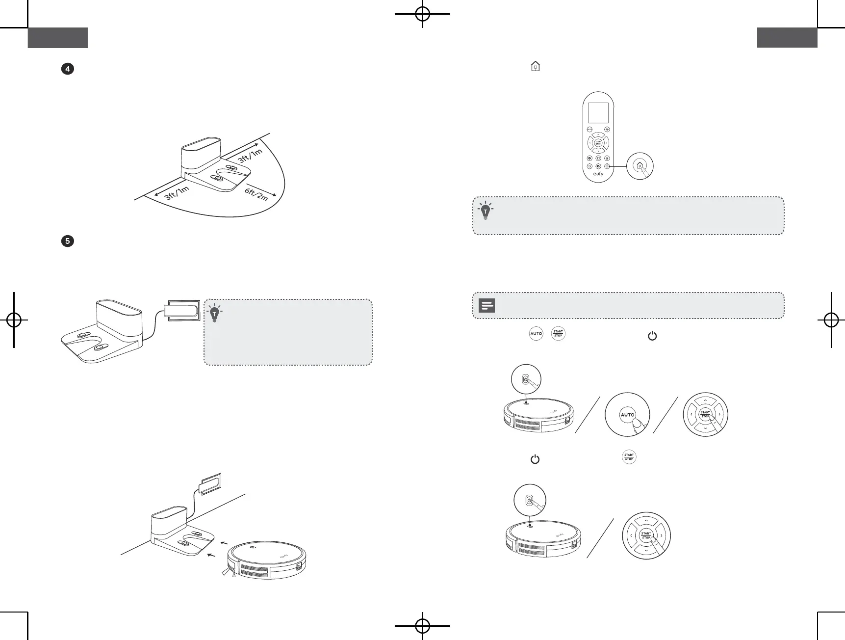 1. Pulse el botón / del RoboVac o el botón del mando a distancia para empezar