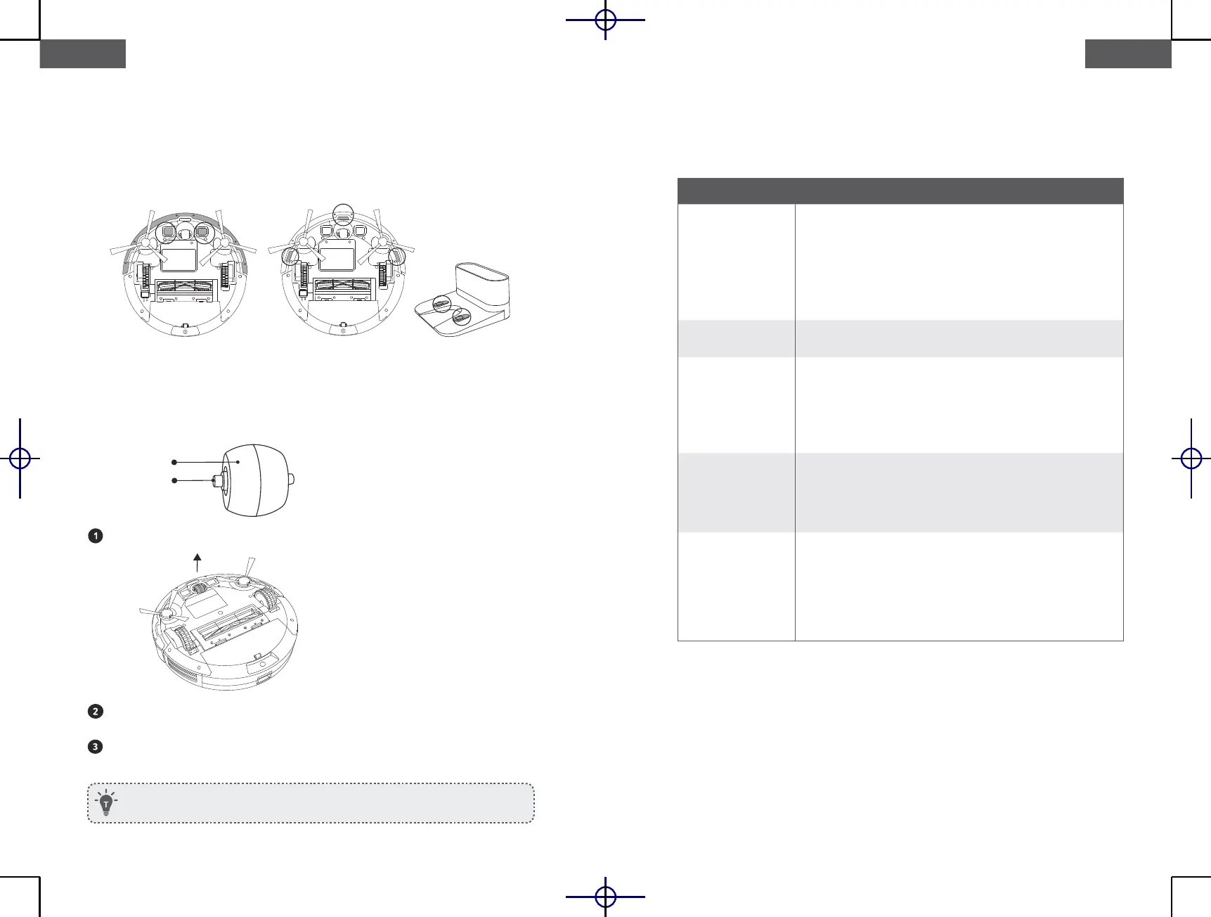 • Spolverare il paraurti, i sensori di caduta e i pin di contatto per la ricarica utilizzando