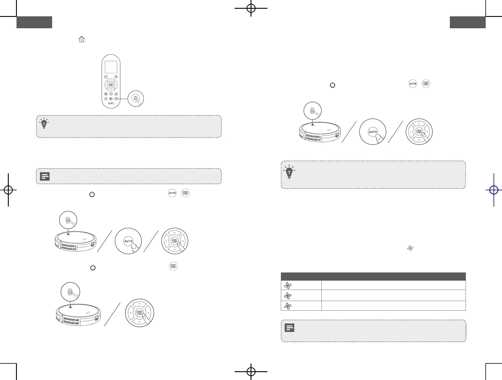 1. Druk op de RoboVac op of druk op de afstandsbediening op / om het