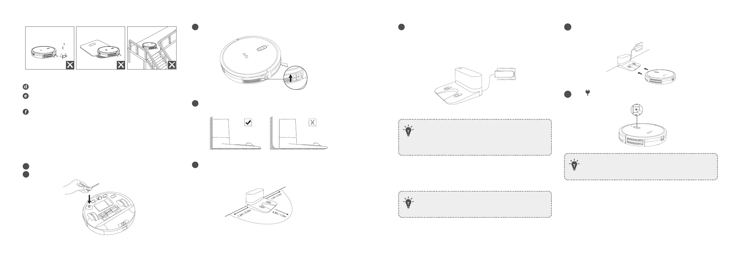 • Always keep the Charging Base plugged in, otherwise RoboVac