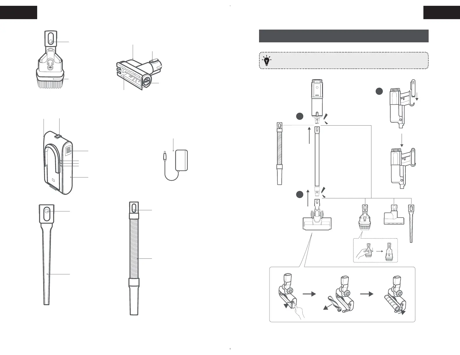 Attach your desired cleaning accessory to the metal tube as illustrated.