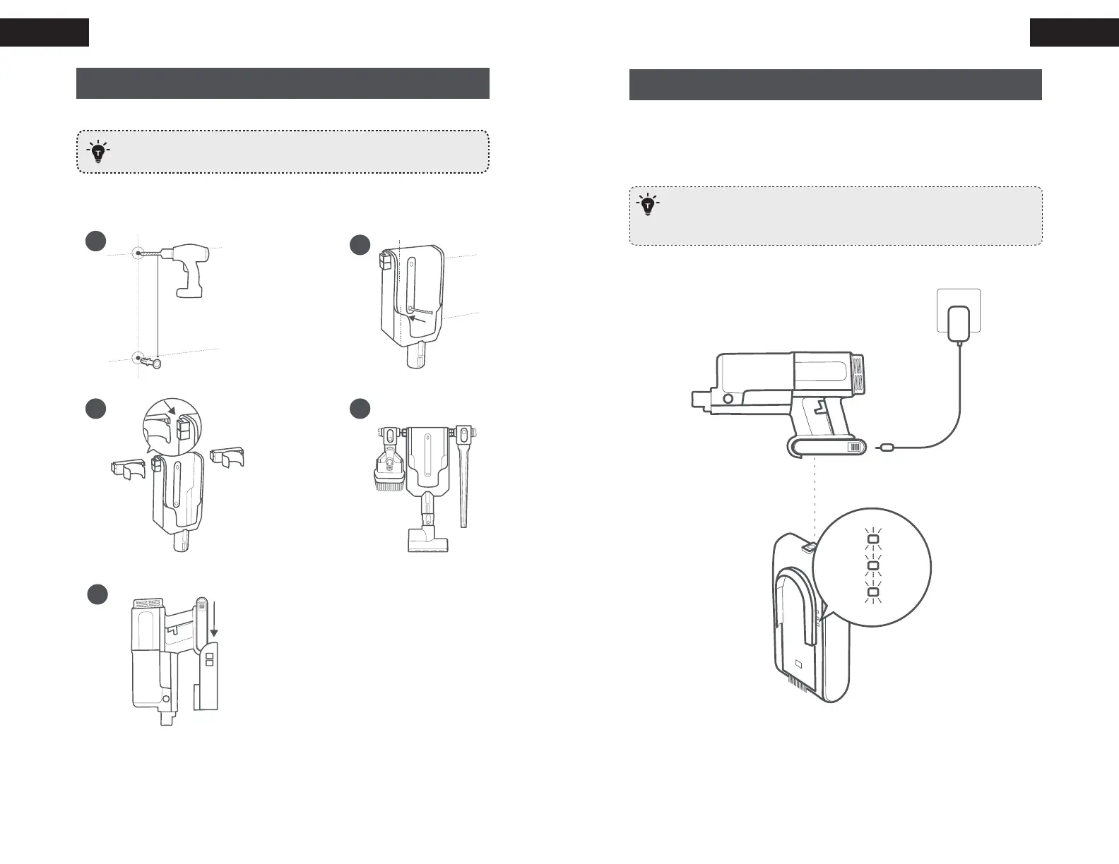 The vacuum cleaner is powered by the built-in lithium battery. Before first use,