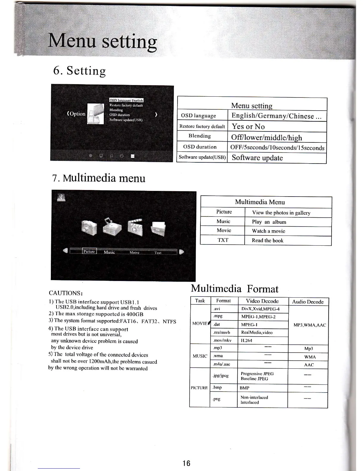EUG X88 - Multimedia Menu; Multimedia Format