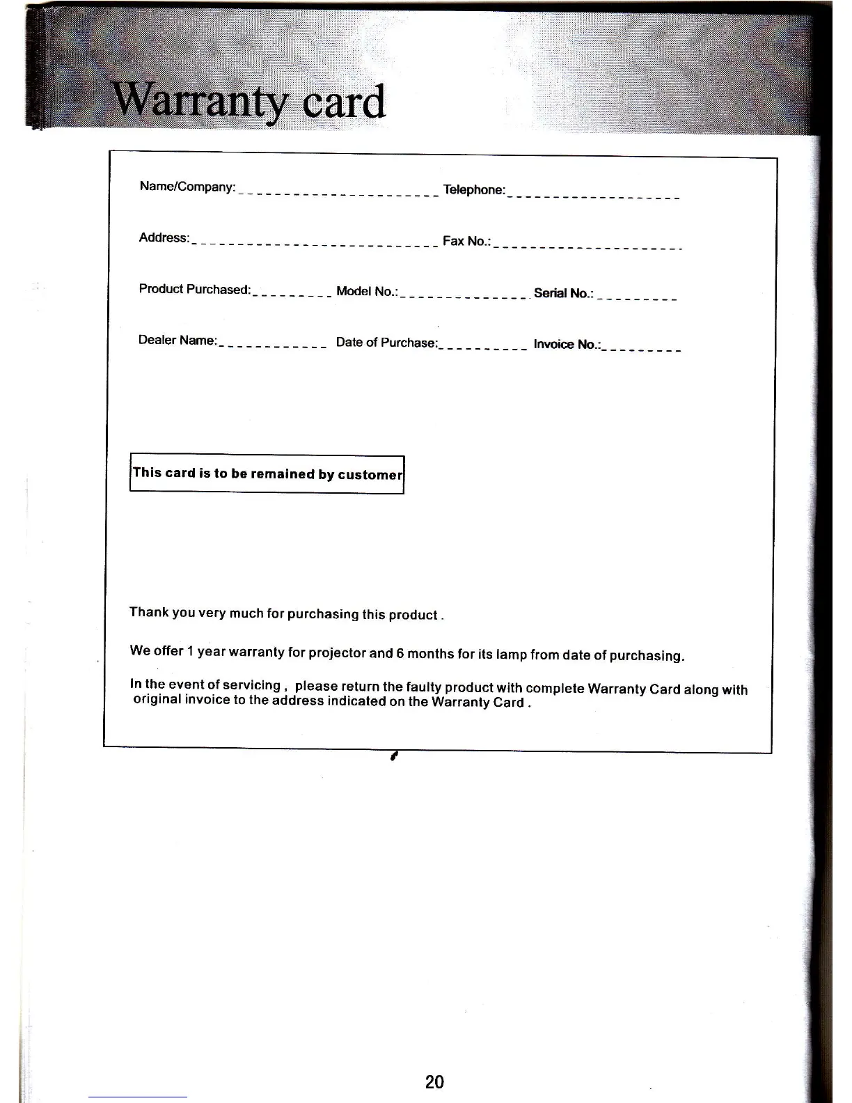 card isto be remained by