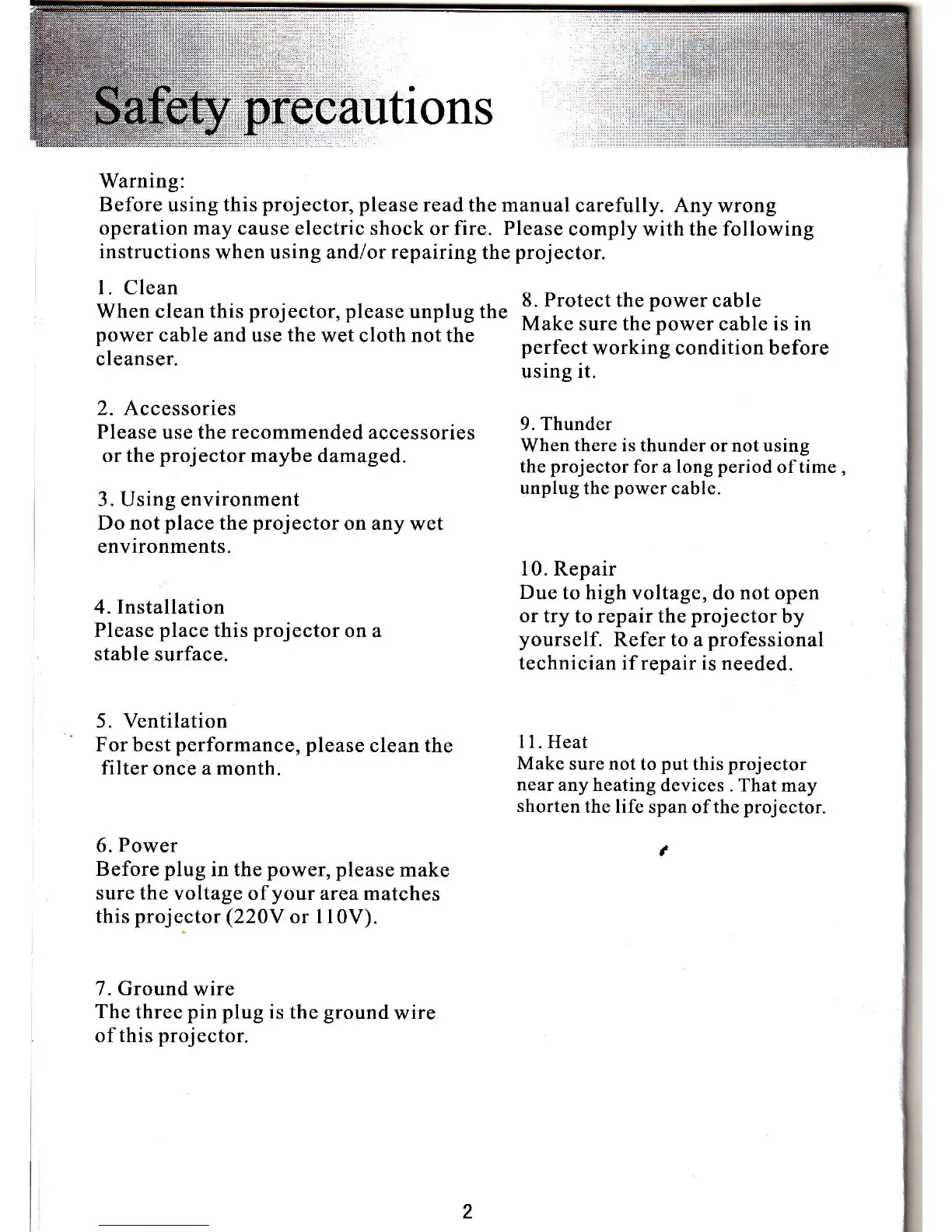 vhcn using and/or repairing thc projcctor.