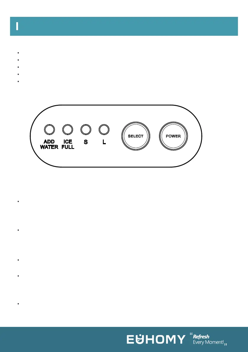 startup. Select the mode: “S” for small ice selection, “L” for large ice selection and the corre-