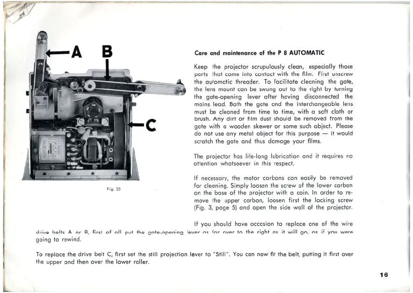 Eumig Automatic P8 - Care and maintenance of the P 8 AUTOMATIC