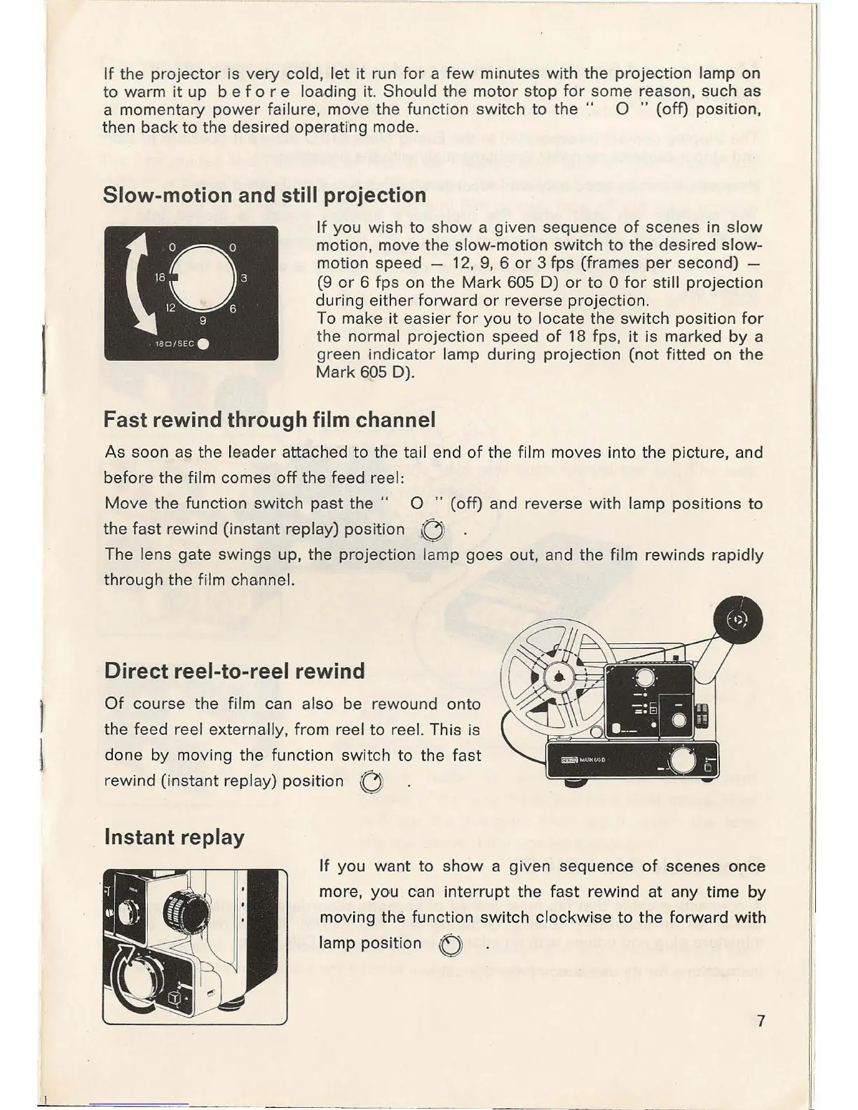 Eumig MARK 605 D - Advanced Projection Modes; Slow-Motion and Still Projection; Film Rewinding Options