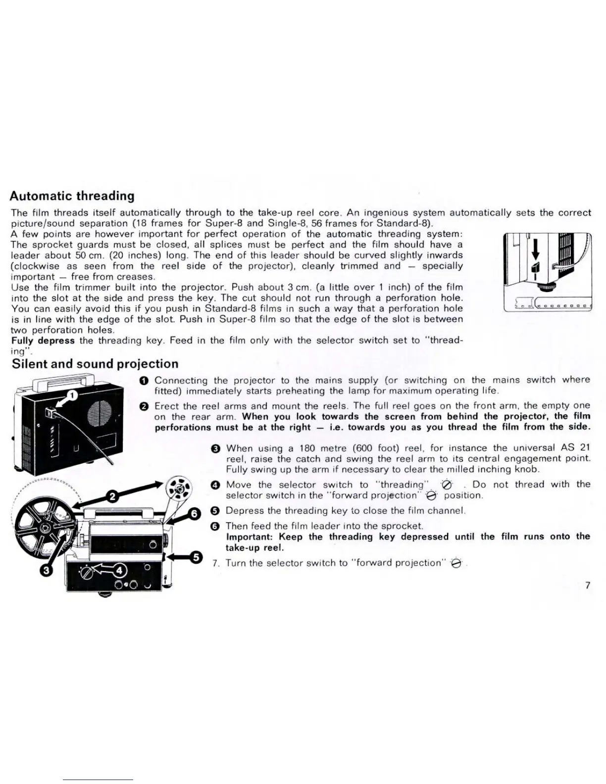 Eumig MARK S 802 - Automatic Threading; Film Leader Preparation; Feed Film with Threading Key; Silent and Sound Projection