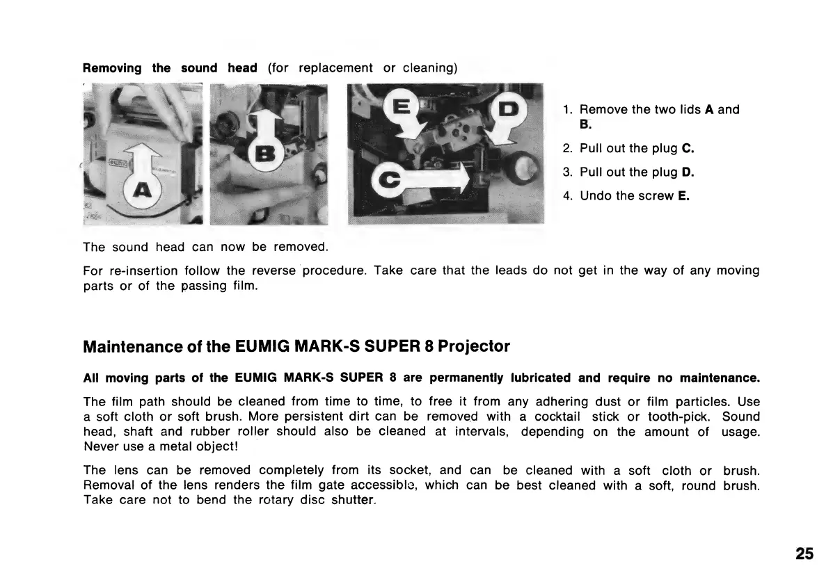 Eumig MARK-S SUPER 8 - The Sound Head; Maintenance of the EUMIG MARK-S SUPER