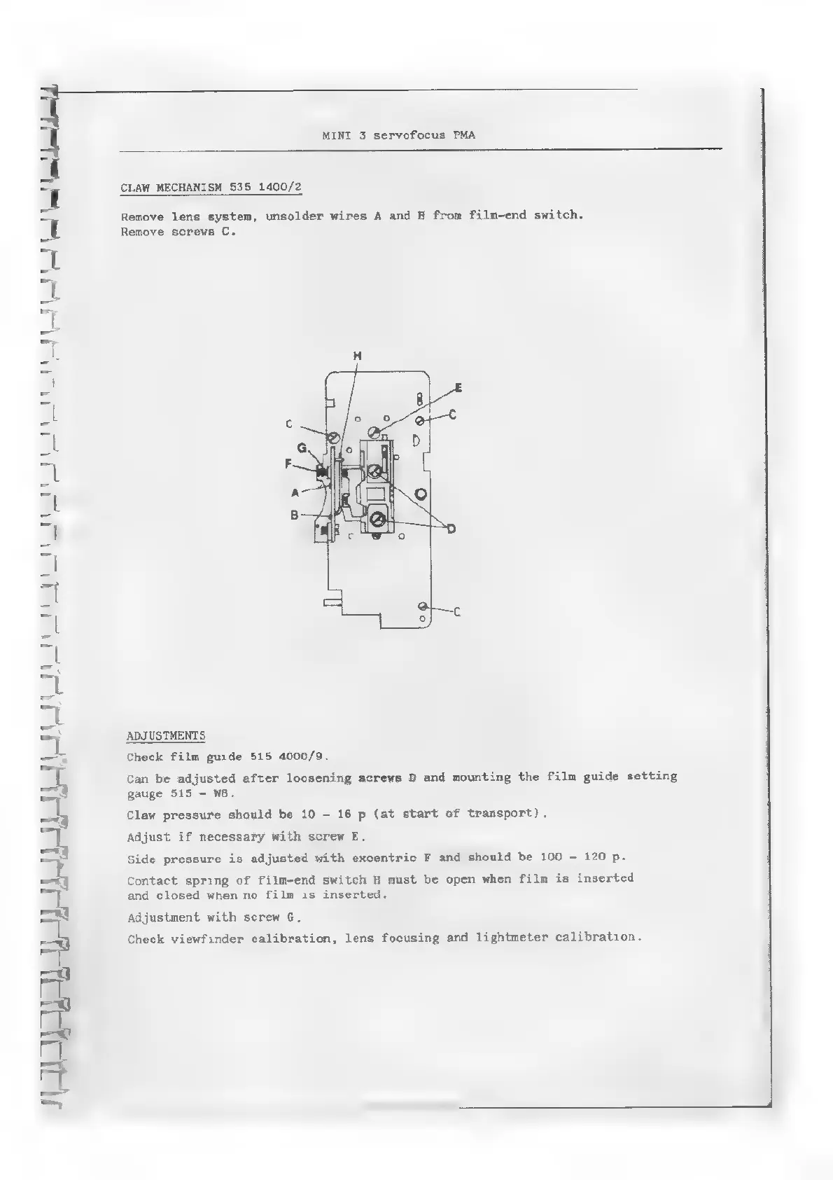 Eumig MINI 3 SERVOFOCUS - CLAW MECHANISM 535 1400;2; Adjustments