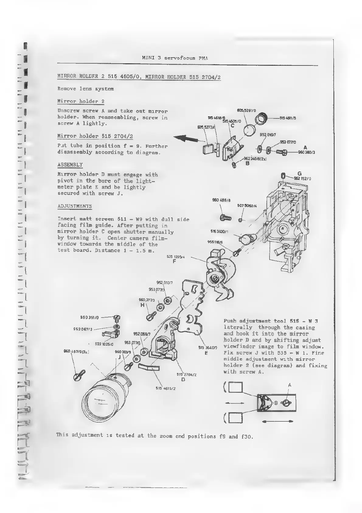 Eumig MINI 3 SERVOFOCUS - MIRROR HOLDERS; Mirror Holder 2 Operations; Mirror Holder 515 2704;2 Operations
