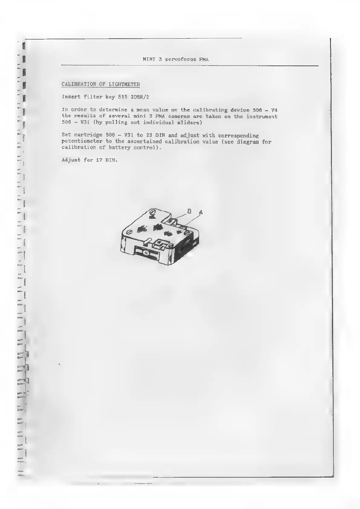 Eumig MINI 3 SERVOFOCUS - CALIBRATION OF LIGHTMETER; Lightmeter Calibration Procedure
