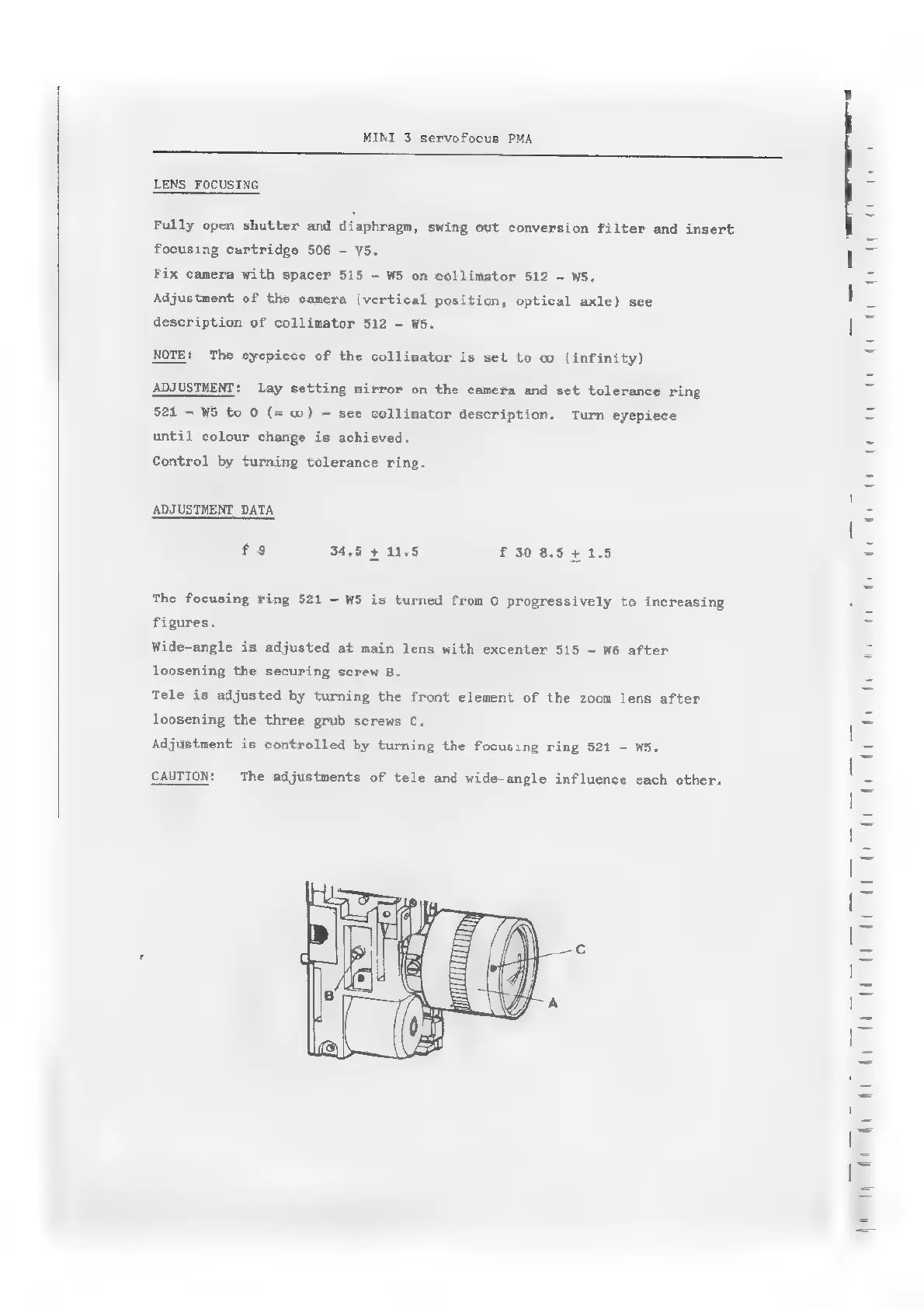 Eumig MINI 3 SERVOFOCUS - LENS FOCUSING; Adjustment; Adjustment Data; Caution