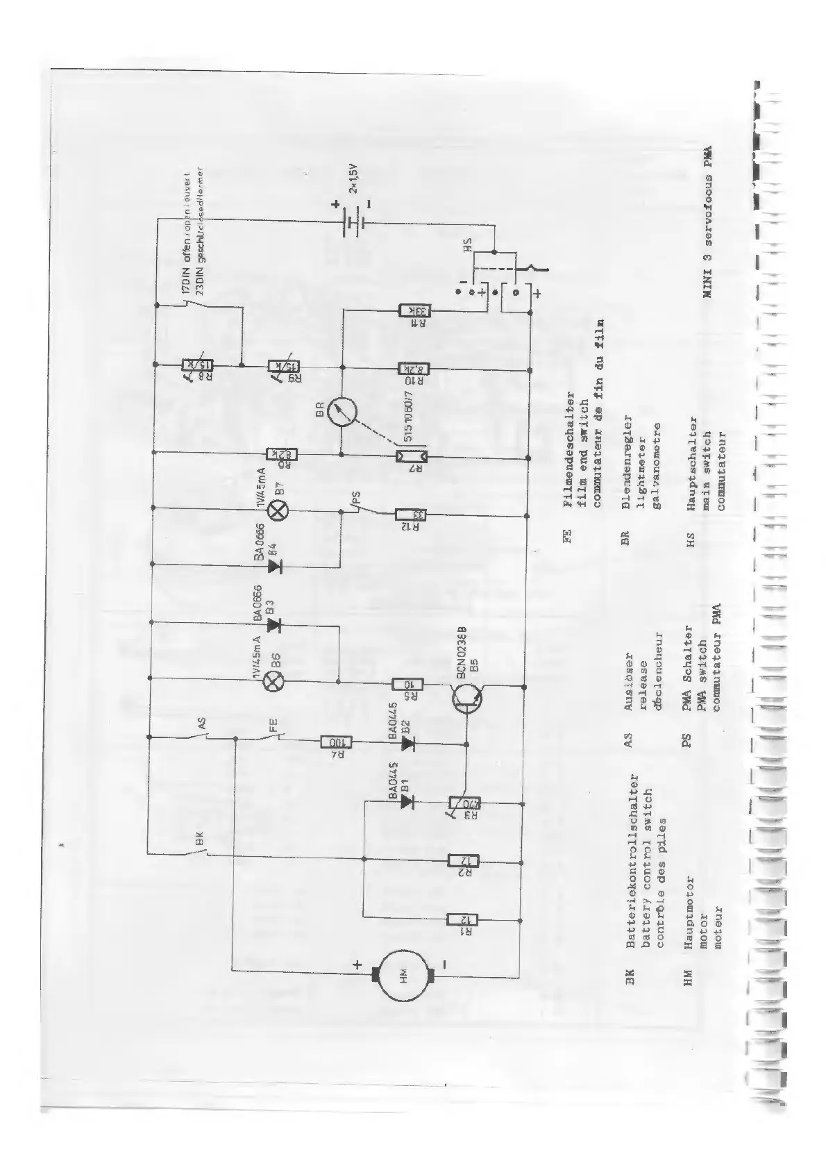 Eumig MINI 3 SERVOFOCUS - CIRCUIT DIAGRAM COMPONENTS; Battery Control Switch (BK); Release (AS); Film End Switch (FE)